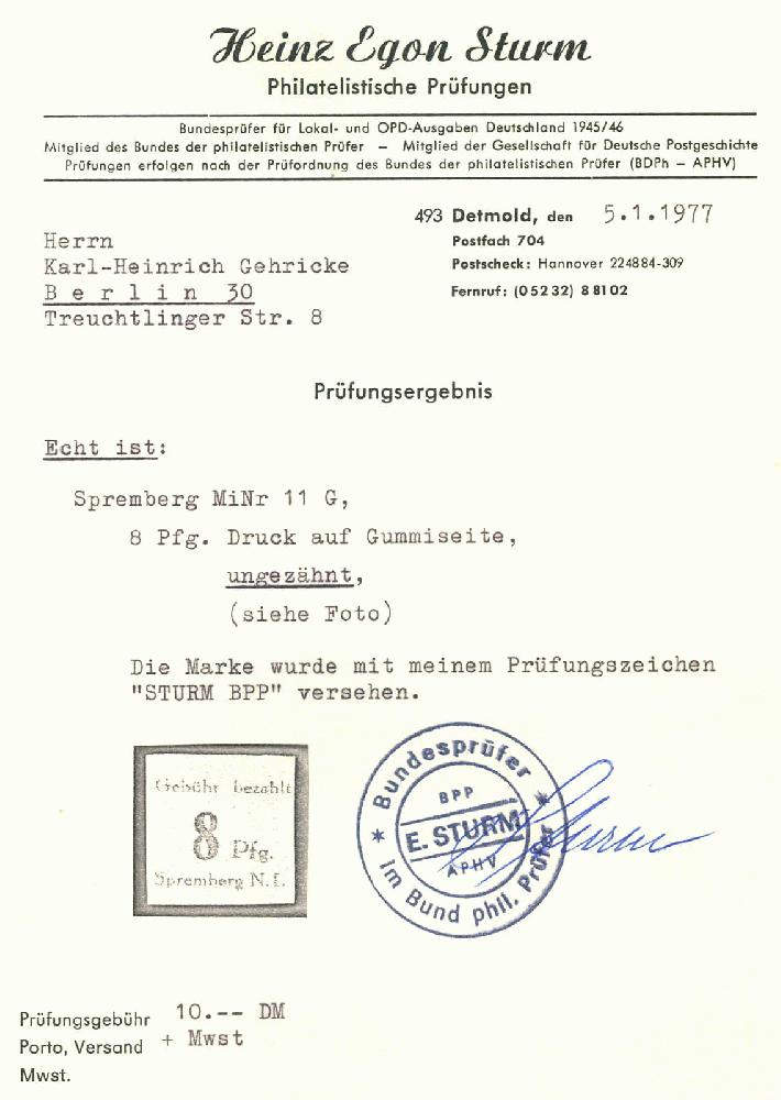 | Prüfer: | Sturm, Heinz Egon (BPP (Bund Philatelistischer Prüfer)) |