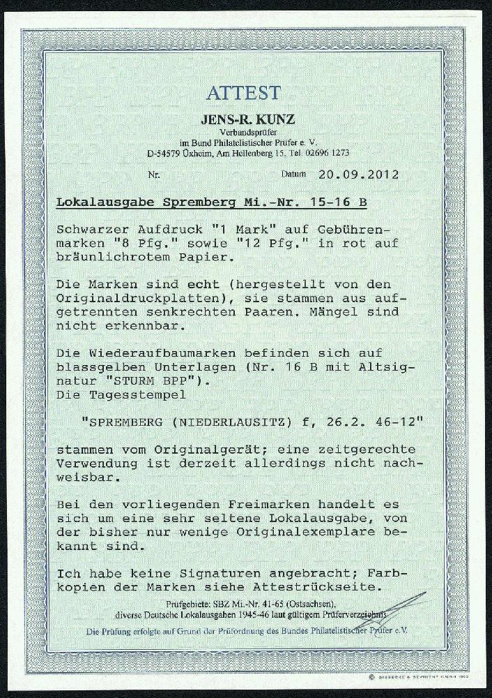 | Prüfgebiet: | Deutsche Lokalausgaben 1945 Spremberg |