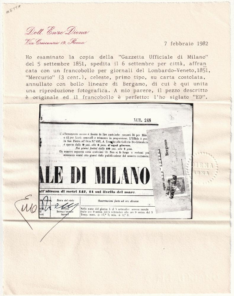 | Zusatzinformationen und Suchstichworte: | Tuscanphila 1. Auktion 23. September 2023 Los 29 Österreich Lombardei Venetien 1851 5 Set ( 3 cent.) I° Tipo Sassone 1 grandi margini su Giornale di Milano x Bergamo Cert.ED f.AD, Oliva raro e Spl Ausruf 300,00 EUR |