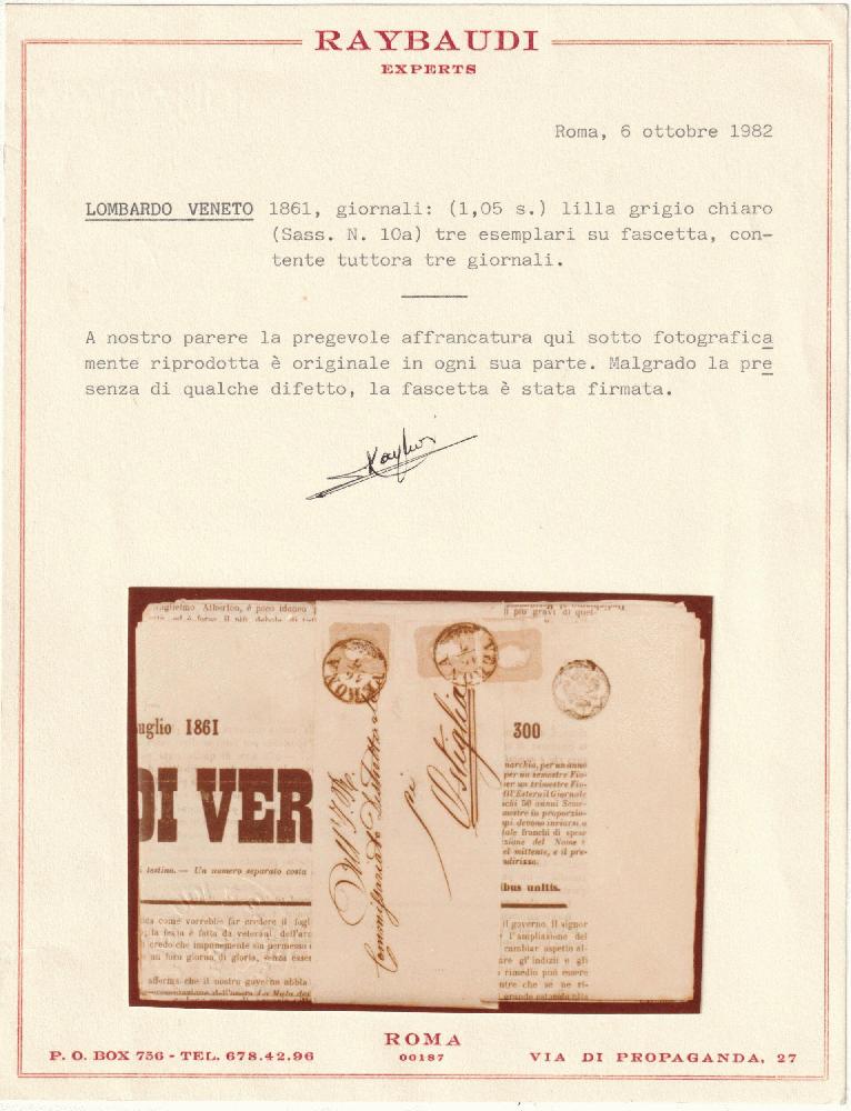 | Zusatzinformationen und Suchstichworte: | Tuscanphila 1. Auktion 23. September 2023 Los 35 Österreich Lombardei Venetien 1861 16 Lug (1,05 s.) x 3 Sassone 10a su fascetta contenente 3 Giornali di Verona completi Cert.Raybaudi insieme molto raro Ausruf 1.000,00 EUR |