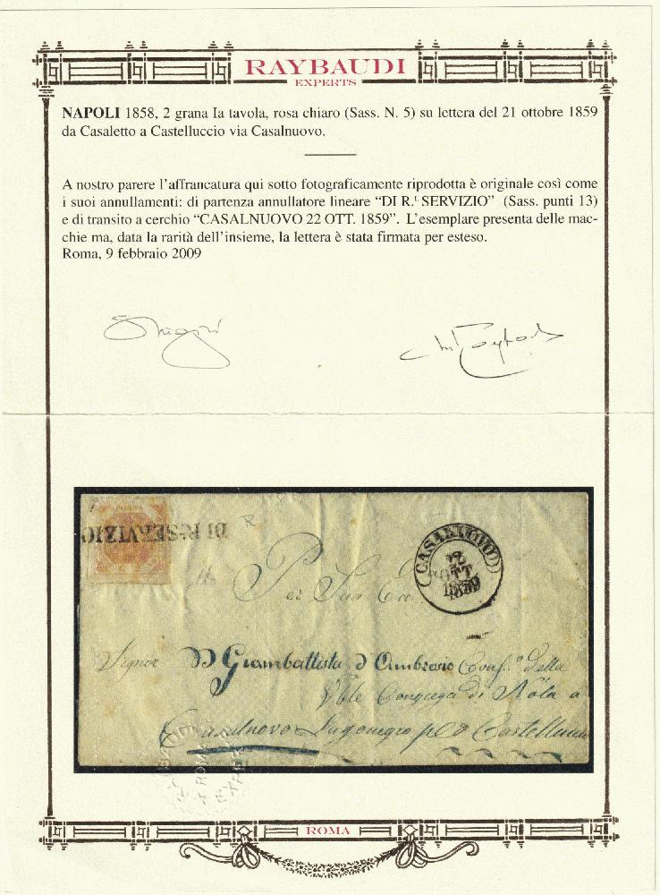 | Zusatzinformationen und Suchstichworte: | Tuscanphila 1. Auktion 23. September 2023 Los 51 Italien Staaten Neapel 1859 21 Ott 2 gr. Sassone 5 su lettera da Casaletto con ann. "Di Real Servizio Pt.13 x Castellamare da Castelnuovo 2 cerchi con data diversa Cert.ORO Ray f.AD Ex Coll. Imperato. Prezzo di catalogo: 8000 Ausruf 800,00 EUR |