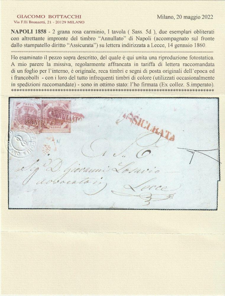 | Zusatzinformationen und Suchstichworte: | Tuscanphila 1. Auktion 23. September 2023 Los 64 Italien Staaten Neapel 1860 14 Gen 2+2 gr. Sassone 5d ben marginati su assicurata da Napoli timbri tutti rossi x Lecce Cert.Bottacchi Ex Coll. Imperato Spl e molto rara Ausruf 1.00,00 EUR |