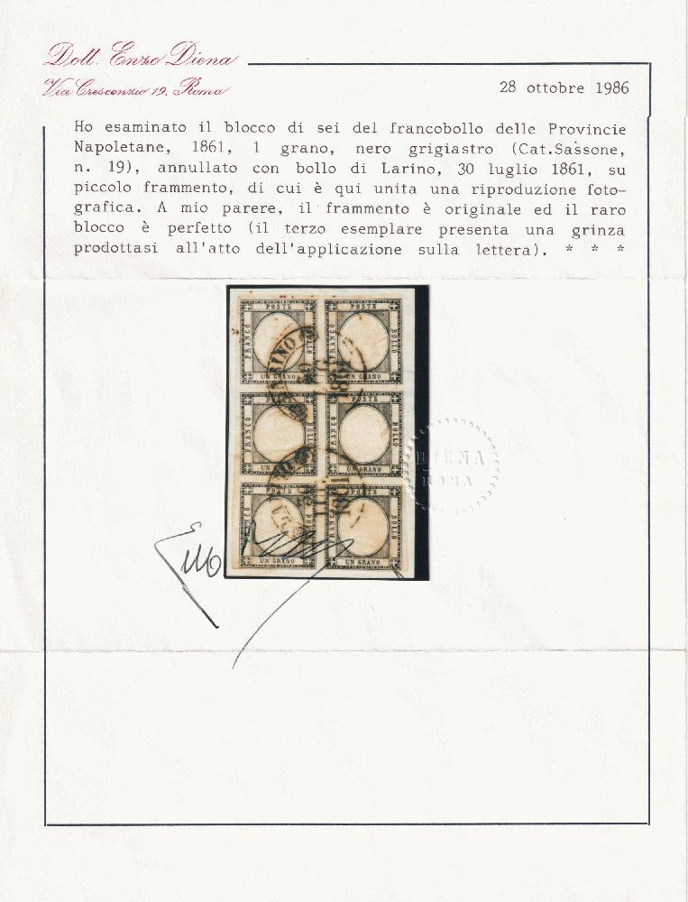 | Zusatzinformationen und Suchstichworte: | Tuscanphila 1. Auktion 23. September 2023 Los 89 Italien Staaten Neapel 1861 30 Lug 1 gr. Blocco di 6 Sassone 19 usato su frammento da Larino Cert.ED f.Bottacchi Ex Coll. Imperato multiplo molto raro. Prezzo di catalogo: 55000 Ausruf 2.500,00 EUR |