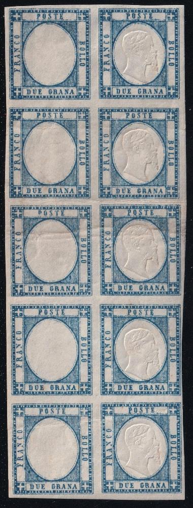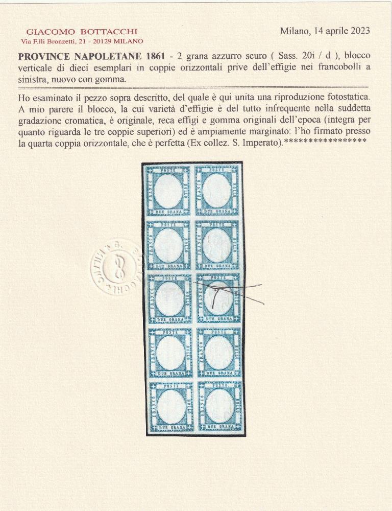 | Zusatzinformationen und Suchstichworte: | Tuscanphila 1. Auktion 23. September 2023 Los 96 Italien Staaten Neapel 2 gr. azz. scuro 5 coppie con e Senza Effigie in blocco di 10 Sassone 20i/d MNH**/MH* Cert. Bott f.Chiav. Ex Coll. Imperato varietà in multiplo di grande rarità e non censita su questa tinta Ausruf 3.000,00 EUR |