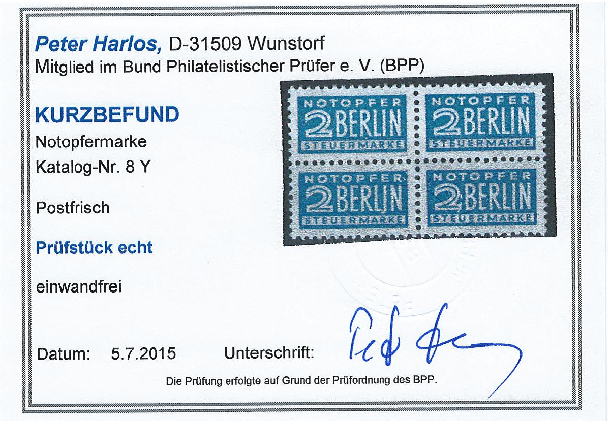| Zusatzinformationen und Suchstichworte: | Notopfer Nr. 8 Y Viererblock |
