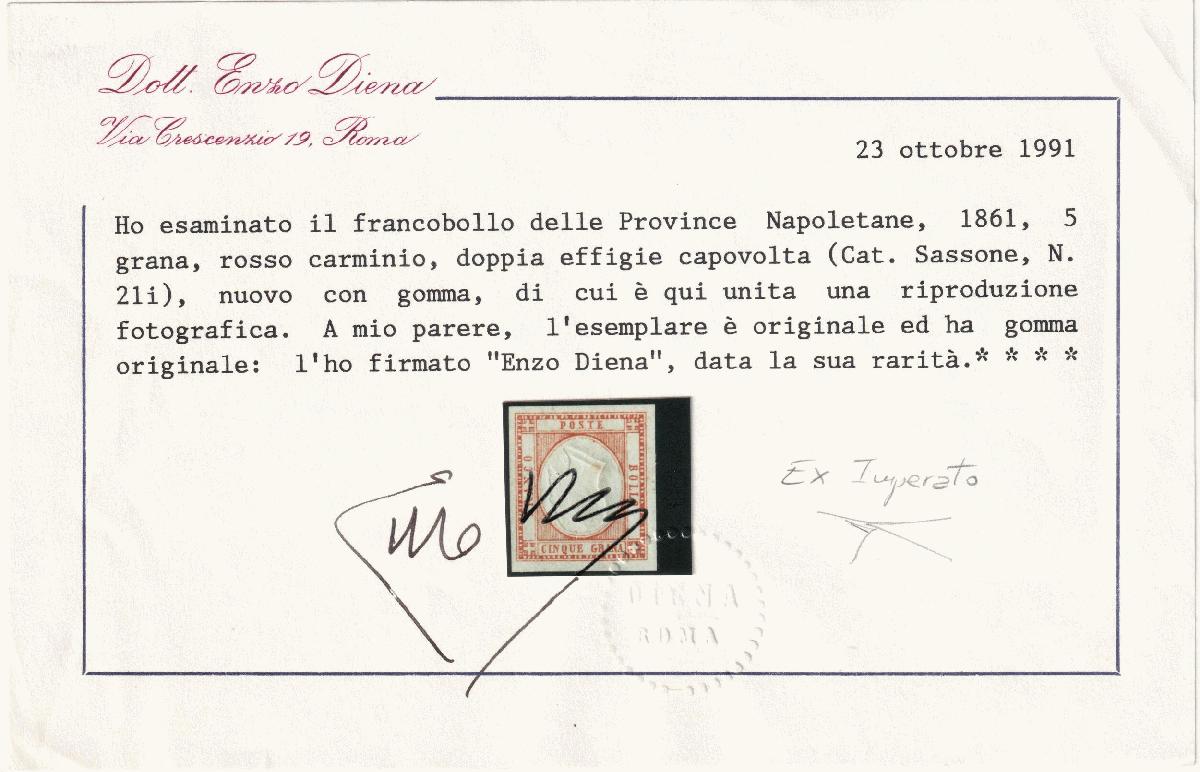 | Zusatzinformationen und Suchstichworte: | Tuscanphila 1. Auktion 23. September 2023 Los 110 Italien Staaten Neapel 5 gr. Doppia Effige Capovolta Sassone 21i ben marginatoMVLH*/** Cert.ED f.Bottacchi Ex Coll. Imperato Spl e raro. Prezzo di catalogo: 6500 Ausruf 500,00 EUR |