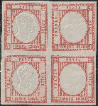 | Zusatzinformationen und Suchstichworte: | Tuscanphila 1. Auktion 23. September 2023 Los 118 Italien Staaten Neapel 5 gr. rosso carm. 2 coppie con e Senza Efigie in Quartina 1 es. angolo incompleto Sassone 21l ben marginata MNH** Cert.Bott. f.ED Ex Coll. Imperato molto raro e Spl Prezzo di catalogo: 20000 Ausruf 1.500,00 EUR |