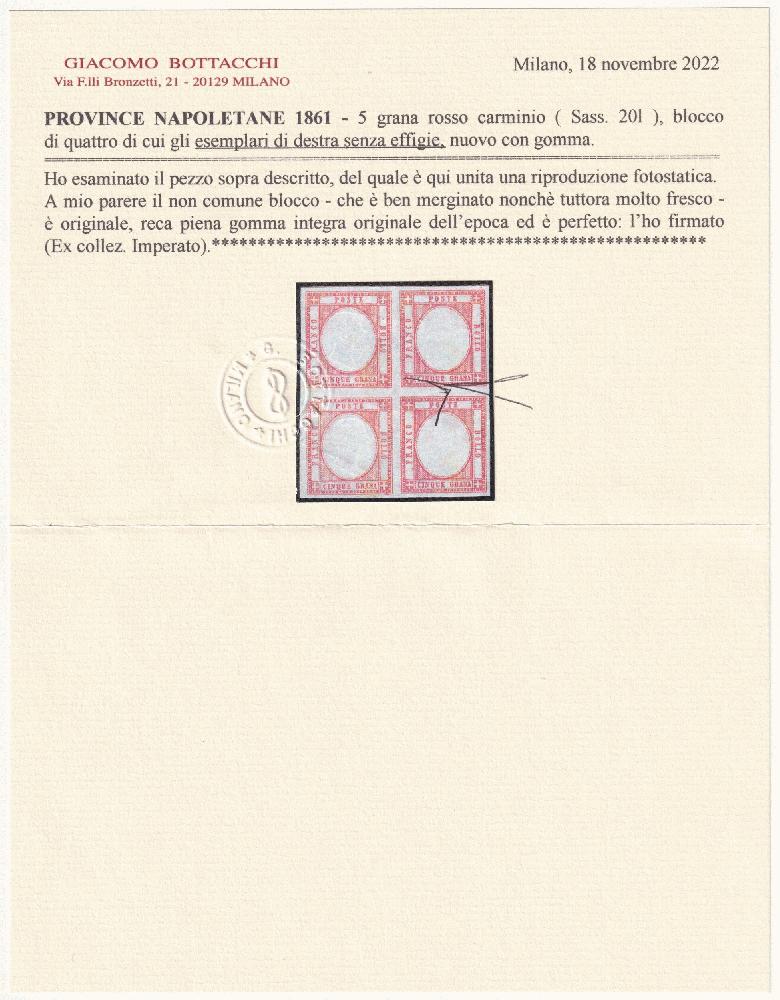 | Prüfer: | Bottacchi, Giacomo (APFIP (Associazione Periti Filatelici Italiani Professioni.)) |