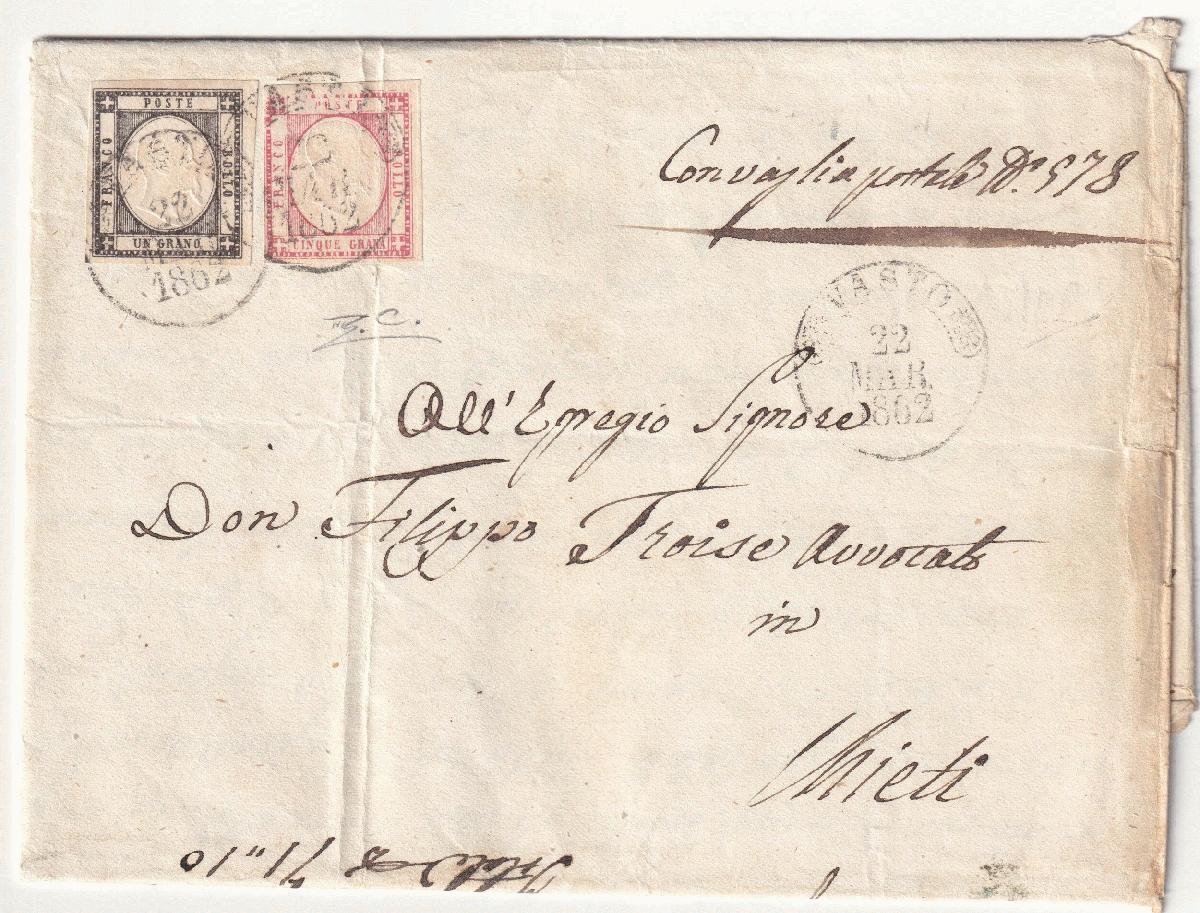 | Zusatzinformationen und Suchstichworte: | Tuscanphila 1. Auktion 23. September 2023 Los 132 Italien Staaten Neapel 1862 22 Mar 1+5 gr. Stampa mancante in alto Sassone 19c+21b VAR su busta da Vasto x Chieti Cert.Colla Ex Coll. Imperato Unica nota Ausruf 1.000,00 EUR |