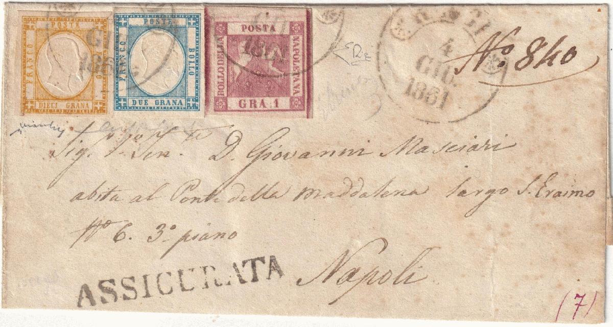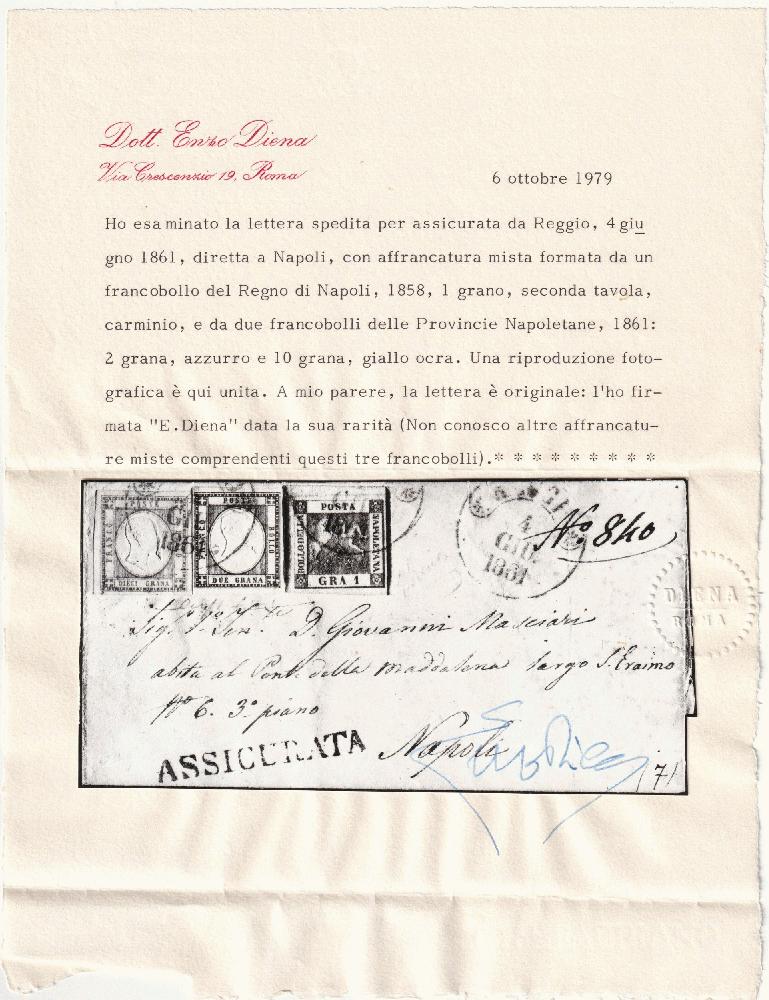 | Zusatzinformationen und Suchstichworte: | Tuscanphila 1. Auktion 23. September 2023 Los 147 Italien Staaten Neapel 1861 4 Giu Tricolore Mista 1 gr. Napoli + 2+10 gr. PN Sassone 4c+20+22a ben marginati su assicurata da Reggio x Napoli Cert.ED UNICA NOTA f. estesa Fiecchi e Chiav. Ex Coll. Imperato grande rarità Ausruf 7.500,00 EUR |