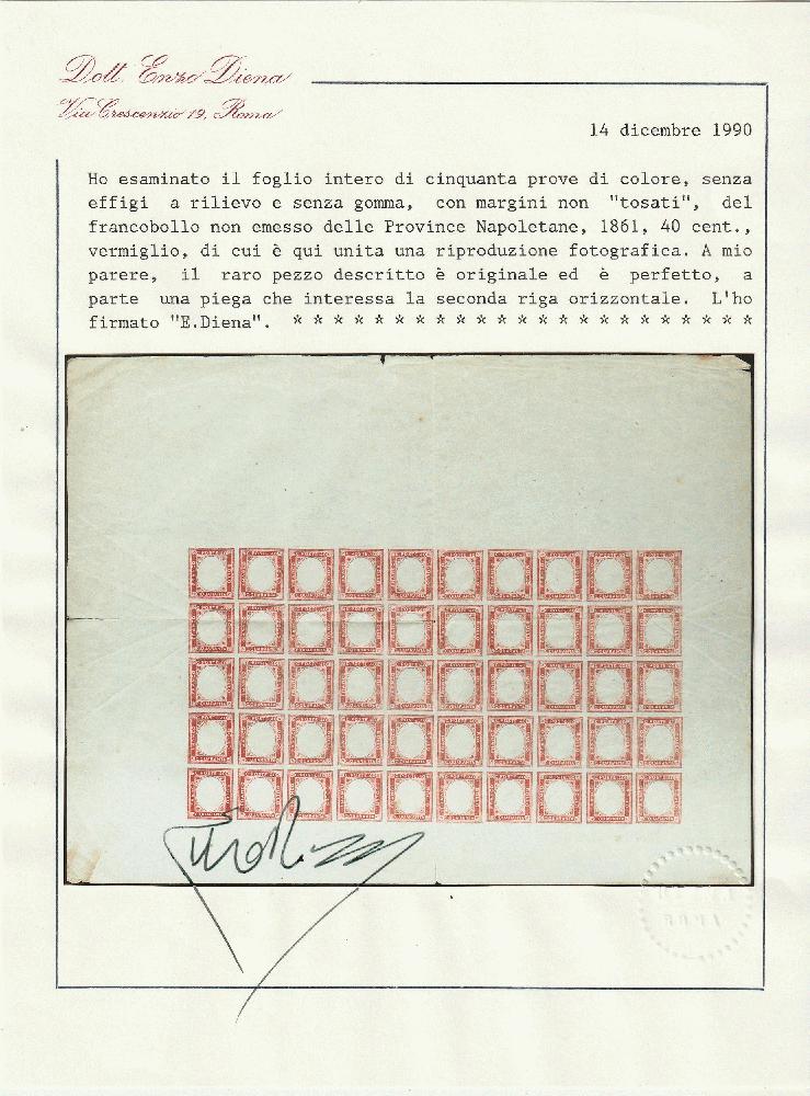| Zusatzinformationen und Suchstichworte: | Tuscanphila 1. Auktion 23. September 2023 Los 181 Italien Staaten Neapel Non Emessi 40 c. Foglio Intero di 50 prova di colore con margini non tosati, come sempre senza gomma e con pieghe Cert.ED molto raro Ausruf 900,00 EUR |