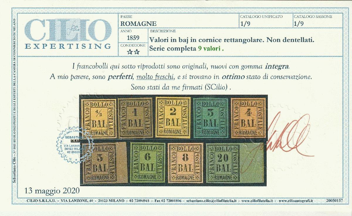 | Zusatzinformationen und Suchstichworte: | Tuscanphila 1. Auktion 23. September 2023 Los 232 Italien Staaten Romagna Serie Completa di 9 valori Sassone 1/9 grandi margini con alcuni Bdf MNH** Cert.Cilio f.G.Bolaffi, AD rara e lusso. Prezzo di catalogo: 8000 Ausruf 1.000,00 EUR |