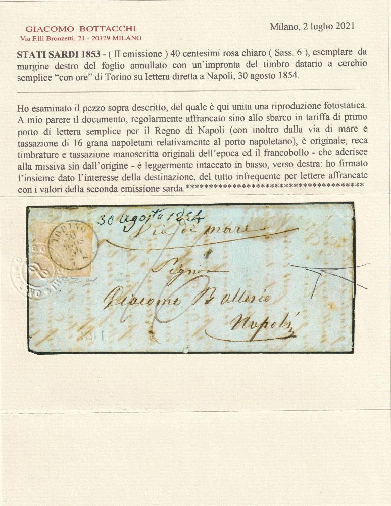 | Zusatzinformationen und Suchstichworte: | Tuscanphila 1. Auktion 23. September 2023 Los 246 Italien Staaten Sardinien 1854 30 Ago Via di Mare 40 c. rosa ch. Sassone 6 Bdf su lettera da Torino x Napoli tassata 14 gr. Cert.Bottacchi rara destinazione per questa emissione Ausruf 500,00 EUR |