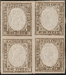 | Zusatzinformationen und Suchstichworte: | Tuscanphila 1. Auktion 23. September 2023 Los 250 Italien Staaten Sardinien IV^ Em. 10 c. grigio olivastro chiaro Quartina Sassone 14C ben marginata MLH* Cert. Raybaudi f.Vaccari, Ray rara e Spl. Prezzo di catalogo: 4500 Ausruf 700,00 EUR |
