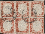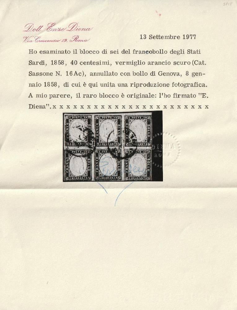 | Zusatzinformationen und Suchstichworte: | Tuscanphila 1. Auktion 23. September 2023 Los 263 Italien Staaten Sardinien IV^ Em. 40 c. vermiglio arancio scuro Blocco di 6 Sassone 16Ac margini da ampi a completi usato a Genova Cert.ED f.esteso Fiecchi, Gazzi, Sott. Ex Coll. Imperato rarissimo. Prezzo di catalogo: 130000 Ausruf 5.000,00 EUR |
