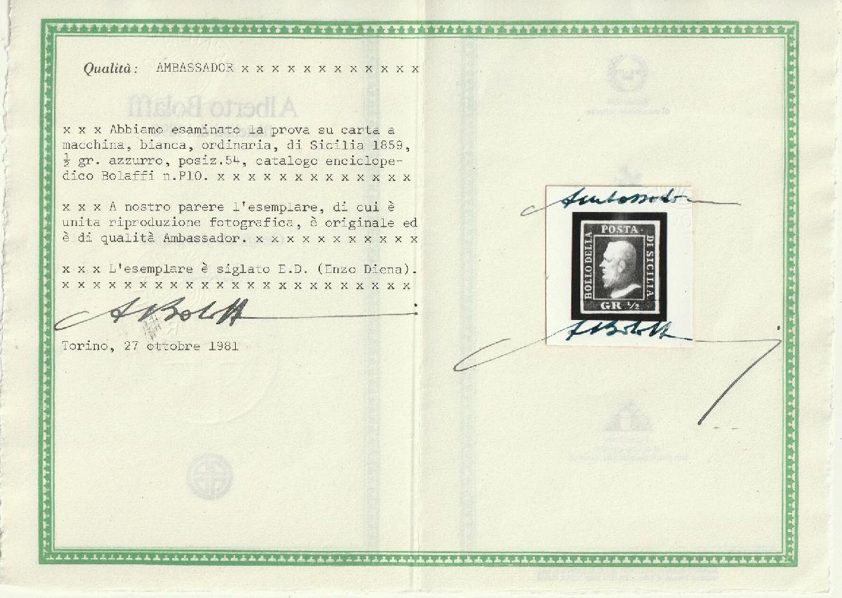 | Zusatzinformationen und Suchstichworte: | Tuscanphila 1. Auktion 23. September 2023 Los 304 Italien Staaten Sizilien Prova di Colore 1/2 gr. azzurro su carta a macchina pos.18 Sassone P34 ben marginata SG(*) come emessa Cert.Bolaffi f.ED rara e Spl Ausruf 750,00 EUR |