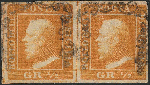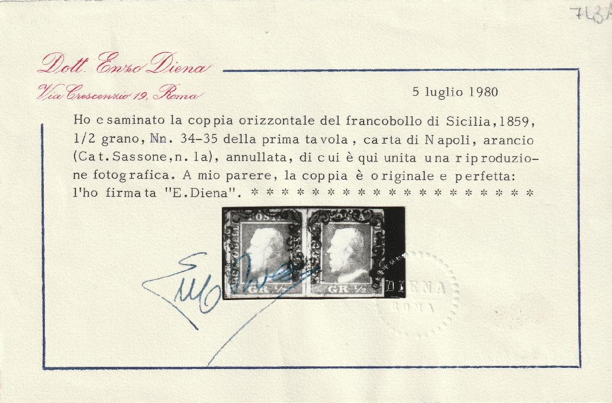 | Zusatzinformationen und Suchstichworte: | Tuscanphila 1. Auktion 23. September 2023 Los 310 Italien Staaten Sizilien 1/2 gr. I^ Tav. arancio NA coppia pos.34-35 Sassone 1a ben marginata usata Cert.ED f.esteso Gazzi, AD, Raybaudi. Prezzo di catalogo: 3500 Ausruf 300,00 EUR |