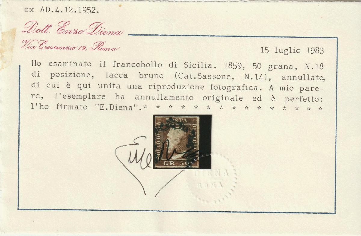 | Zusatzinformationen und Suchstichworte: | Tuscanphila 1. Auktion 23. September 2023 Los 326 Italien Staaten Sizilien 50 gr. lacca bruno pos.18 Sassone 14 marginato usato Cert.ED "perfetto" + AD e firmato esteso Emilio Diena raro. Prezzo di catalogo: 12000 Ausruf 800,00 EUR |