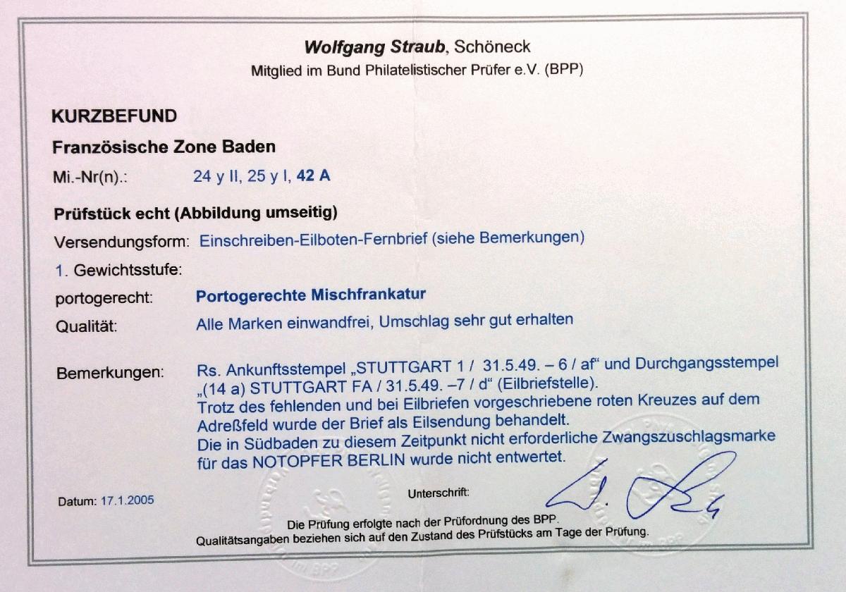 | Prüfgebiet: | Alliierte Besetzung Französische Zone Baden |