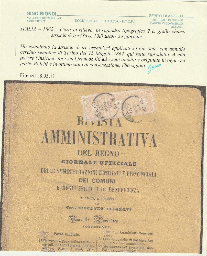 | Zusatzinformationen und Suchstichworte: | Toscanphila 1. Auktion 23. September 2023 Los 364 Italien Königreich 1862 15 Mag Cifra a rilievo 2 c. giallo chiaro I° Giorno d'Uso striscia di 3 Sassone 10d su Rivista Amministrativa da Torino Cert.Colla+Biondi rara Ausruf 800,00 EUR |