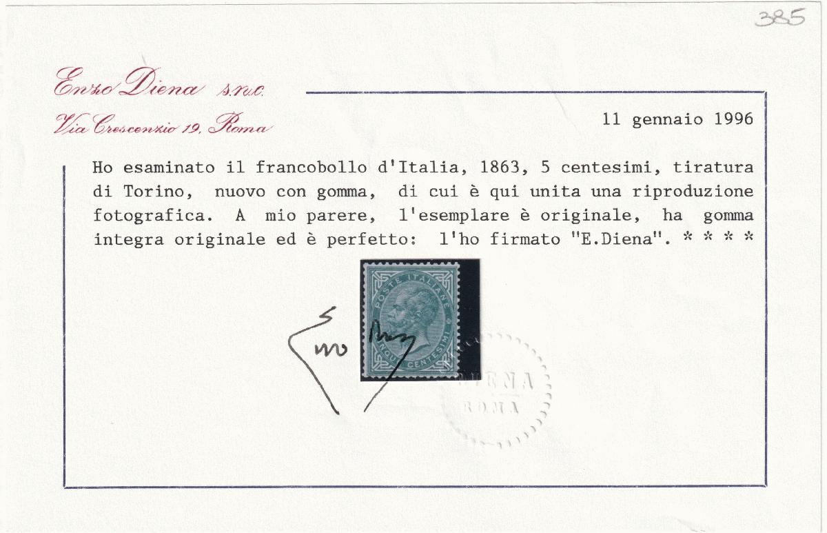 | Zusatzinformationen und Suchstichworte: | Toscanphila 1. Auktion 23. September 2023 Los 384 Italien Königreich Tir.di Torino 5 c. verde grigio scuro Sassone T16 centrato MNH** Cert.ED f.AD molto raro e Spl Ausruf 800,00 EUR |