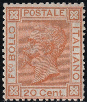 | Zusatzinformationen und Suchstichworte: | Toscanphila 1. Auktion 23. September 2023 Los 399 Italien Königreich 1877 20 c. ocra arancio Sassone 28 centrato MNH** Cert.ORO Raybaudi+ Cert.Colla+ Cert.Sorani f.AD raro e Spl. Prezzo di catalogo: 17000 Ausruf 2.500,00 EUR |
