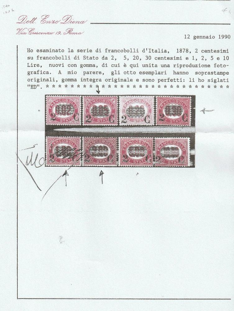 | Zusatzinformationen und Suchstichworte: | Toscanphila 1. Auktion 23. September 2023 Los 400 Italien Königreich 1878 Servizio Soprastampato Serie Completa Sassone S.3 centrato MNH** 3 Certificati Raybaudi, Caffaz, ED f.G.Bolaffi, Fiecchi, Em.D, AD rarissima e Spl. Prezzo di catalogo: 31000 Ausruf 3.000,00 EUR |