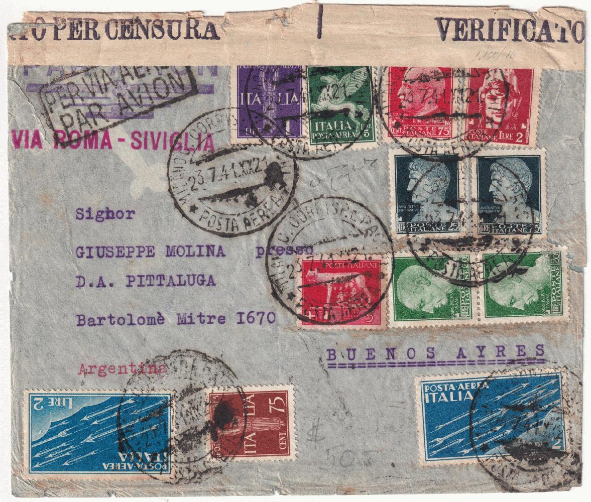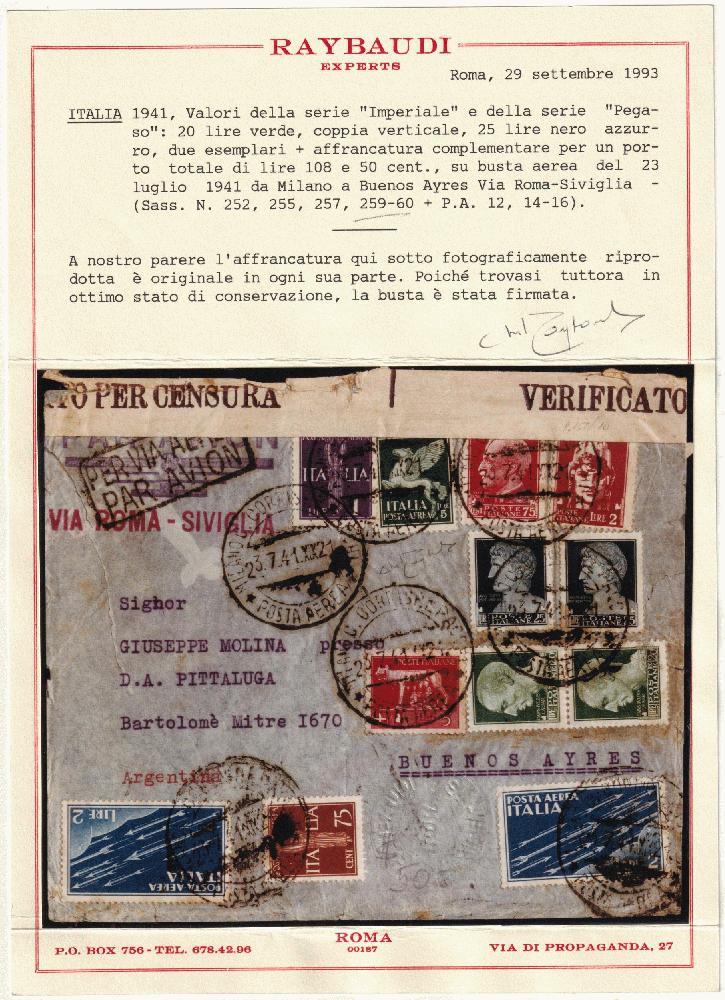 | Zusatzinformationen und Suchstichworte: | Toscanphila 1. Auktion 23. September 2023 Los 449 Italien Königreich 1941 23 7 Posta Aerea 20 l. x 2 + 25 l.x2 + complementari Sassone 252+255+257+259+260+A12+14/16 su letera con censura da Milano x Buenos Aires Cert.Ray molto rara e Spl Ausruf 700,00 EUR |