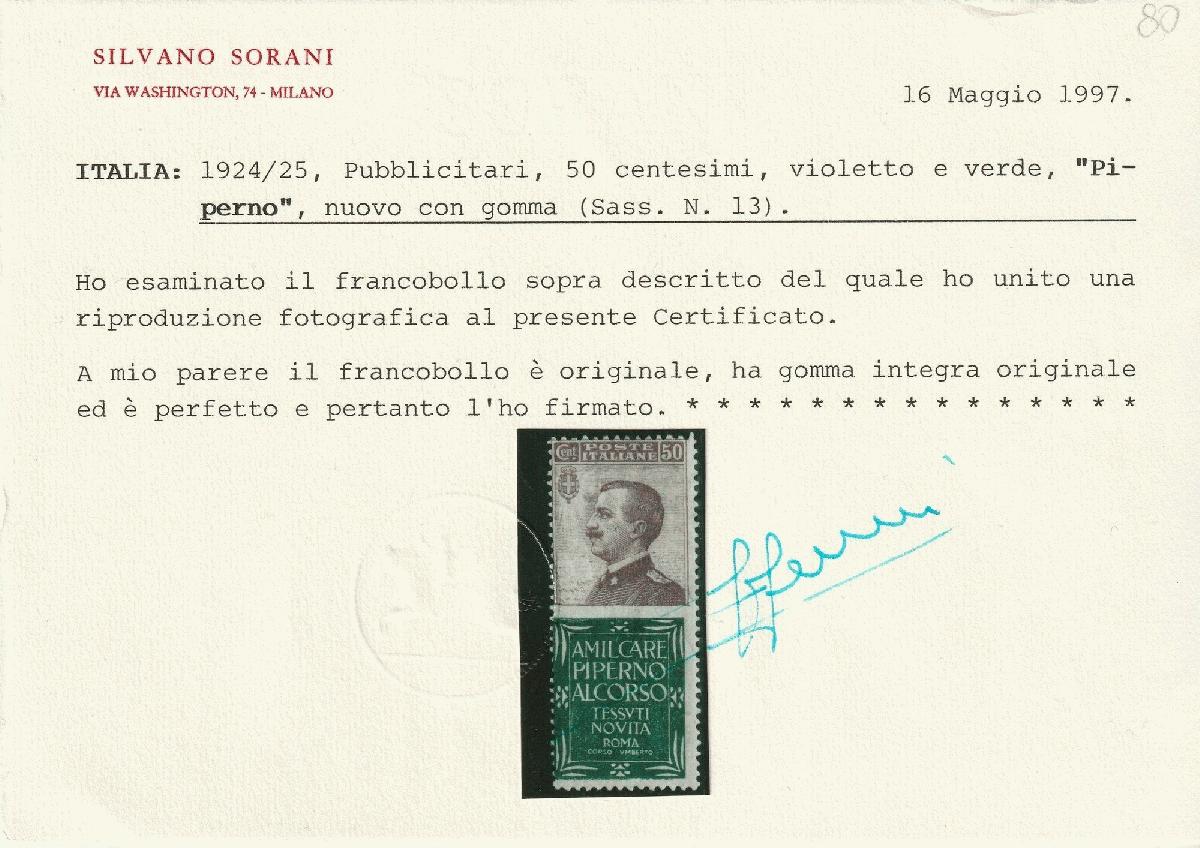| Prüfer: | Sorani, Silvano (APFIP (Associazione Periti Filatelici Italiani Professioni.)) |