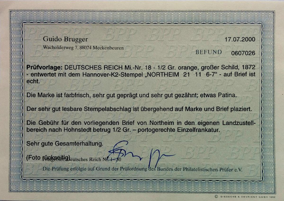 | Prüfgebiet: | Deutsches Reich 1871 - 1918 (Mi-Nr. 1 - 106) |