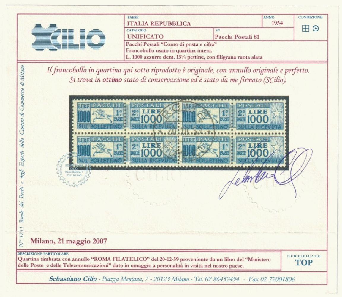 | Prüfgebiet: | Italien 1861 - aktuell Paketmarken |