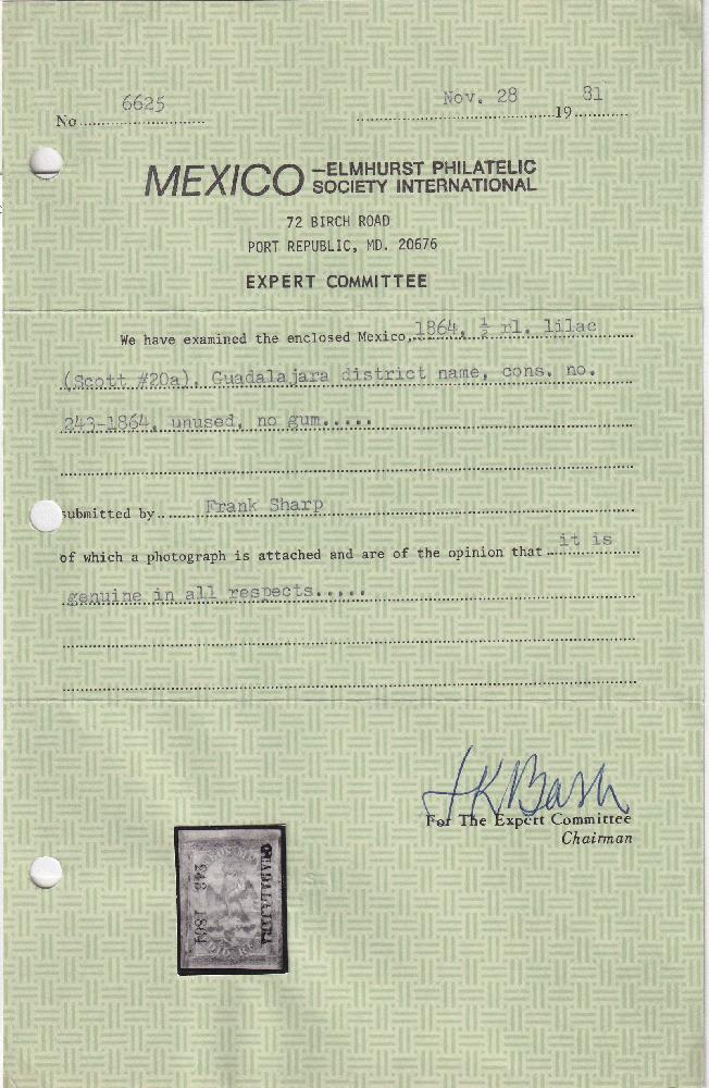 | Prüfer: | MEPSI, Mexico Elmhurst Philatelic Society Inter (Prüferkommission) |
