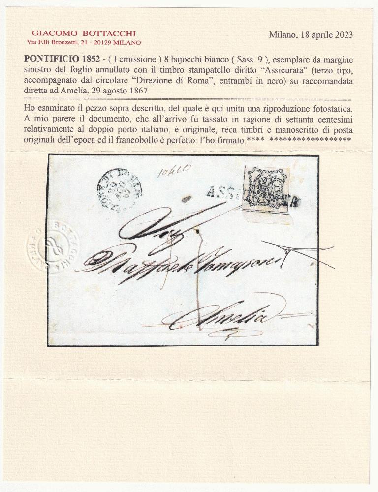 | Zusatzinformationen und Suchstichworte: | Toscanphila 1. Auktion 23. September 2023 Los 221 Italien Staaten Kirchenstaat 1867 29 Ago 8 b. isolato Sassone 9 Bdf su sovr. annullo assicurata della Direzione di Roma x Amelia Tassata 70 c. italiani Cert.Bottacchi Ausruf 150,00 EUR |
