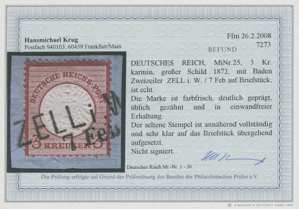 | Zusatzinformationen und Suchstichworte: | Ulrich Felzmann 37. e@uction 5. - 8. September 2023 Los 12006 Altdeutschland Baden ZELL I. W. 7 FEB, annähernd vollständiger und glasklarer Luxus-Abschlag des L2 auf wunderschönem, einwandfreiem Liebhaber-Briefstück mit 3 Kr großer Brustschild, Fotobefund Krug BPP Ausruf 50,00 EUR |