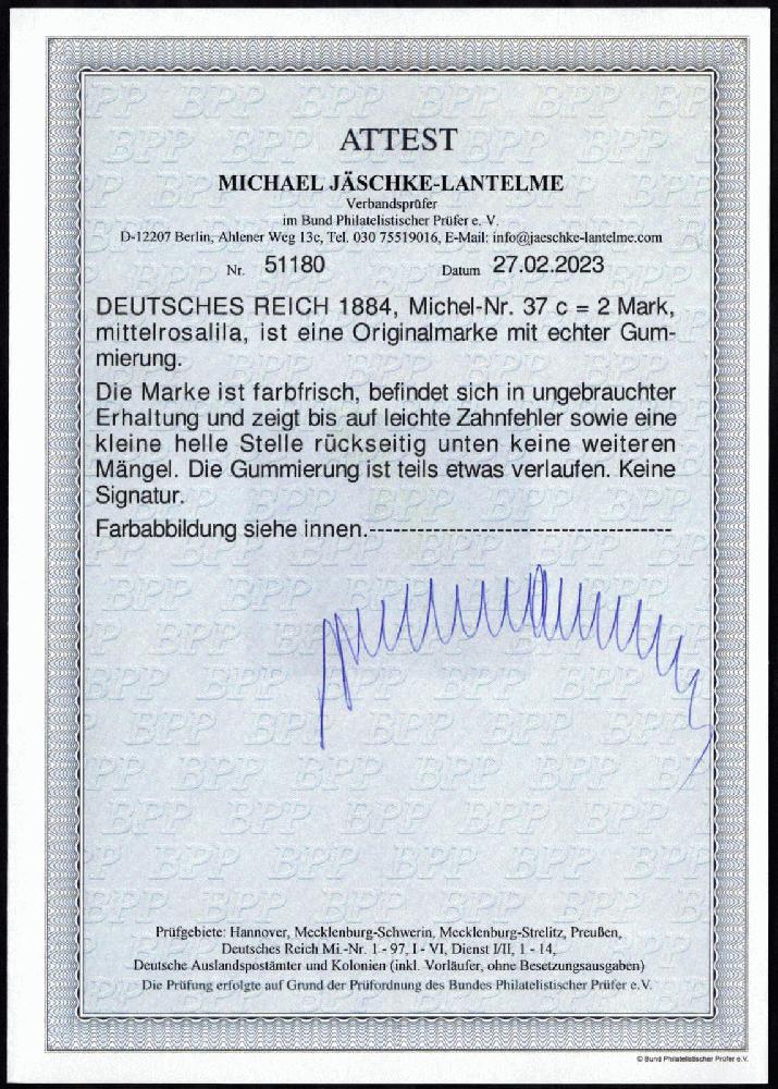 | Prüfer: | Jäschke-Lantelme, Michael (BPP (Bund Philatelistischer Prüfer)) |