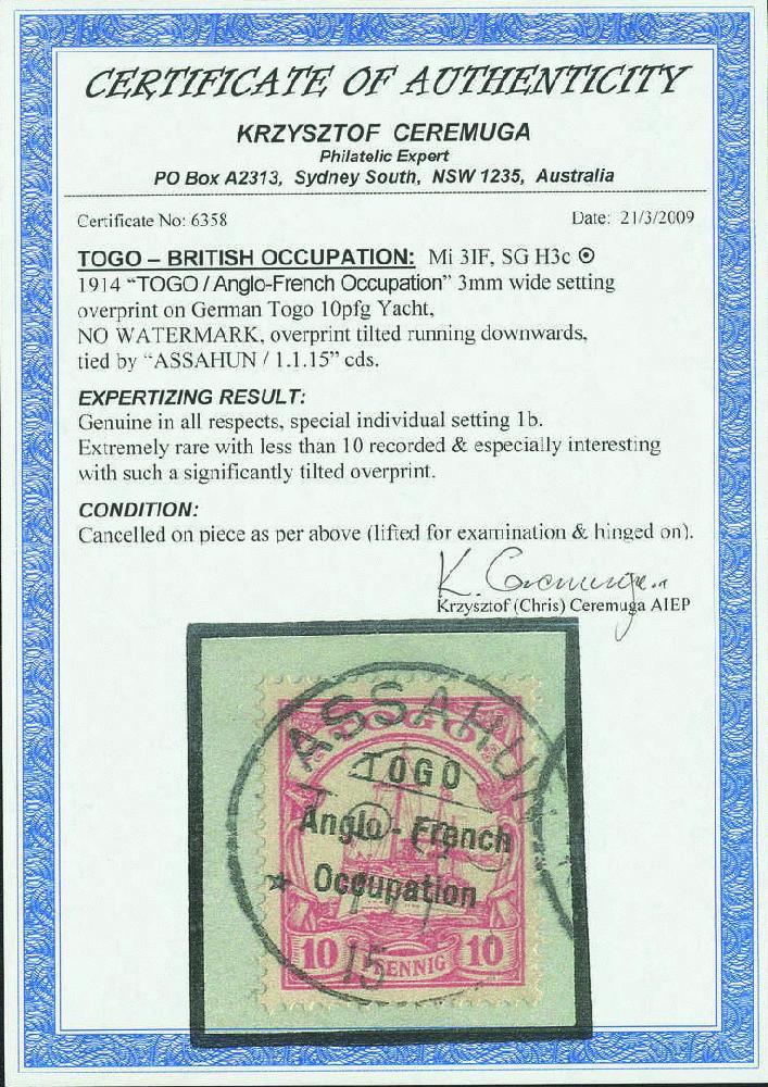| Prüfgebiet: | Deutsche Kolonien Togo Britische Besetzung |