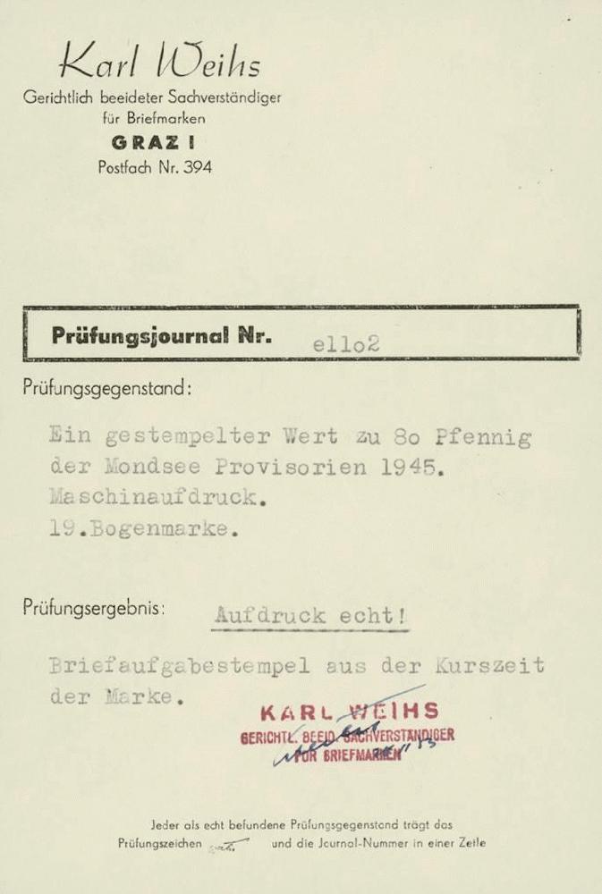 | Prüfgebiet: | Österreich - ab 1945 Lokalausgaben |