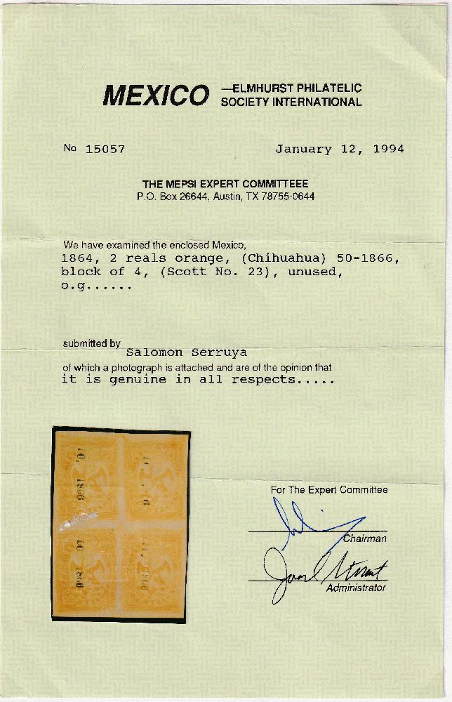 | Prüfer: | MEPSI, Mexico Elmhurst Philatelic Society Inter (Prüferkommission) |