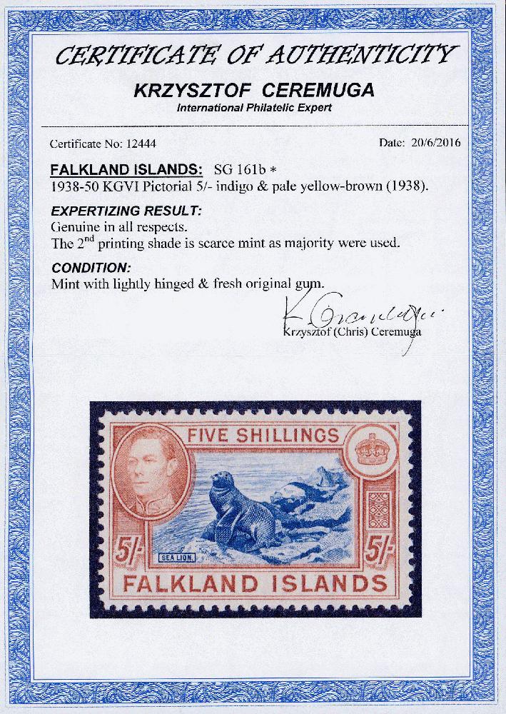 | Zusatzinformationen und Suchstichworte: | David Feldman S.A. - Great Britain and British Empire 26. - 29. Juni 2023 Los 40731 Falkland 1938-50 Schrift 5er indigo und blass gelbbraun, ungebraucht, sehr kleiner Falz, frisch und Pracht für diese seltene Farbton. Attest Ceremuga (2016). SG £1100 Ausruf 300,00 GBP |