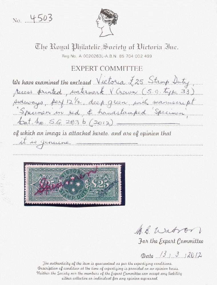 | Prüfer: | RPSVI, Royal Philatelic Society of Victoria Inc (Prüferkommission) |