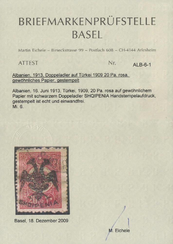 | Prüfer: | Eichele, Martin (BPB (Briefmarkenprüfstelle Basel)) |