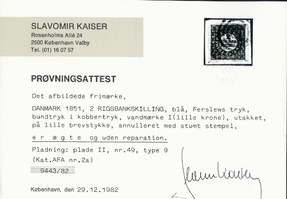 | Zusatzinformationen und Suchstichworte: | Skanfil Auktion - Frühling Auktion 2023 4. - 7. Mai 2023 Los 2318 Dänemark 2a. 2 RBS Ferslew plII/49 type 9. Pent merke på klip med prima attest Kaiser Zuschlag 6.200,00 NOK |