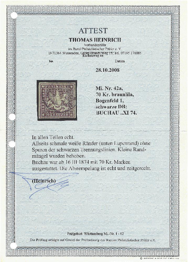| Prüfer: | Heinrich, Thomas (BPP (Bund Philatelistischer Prüfer)) |