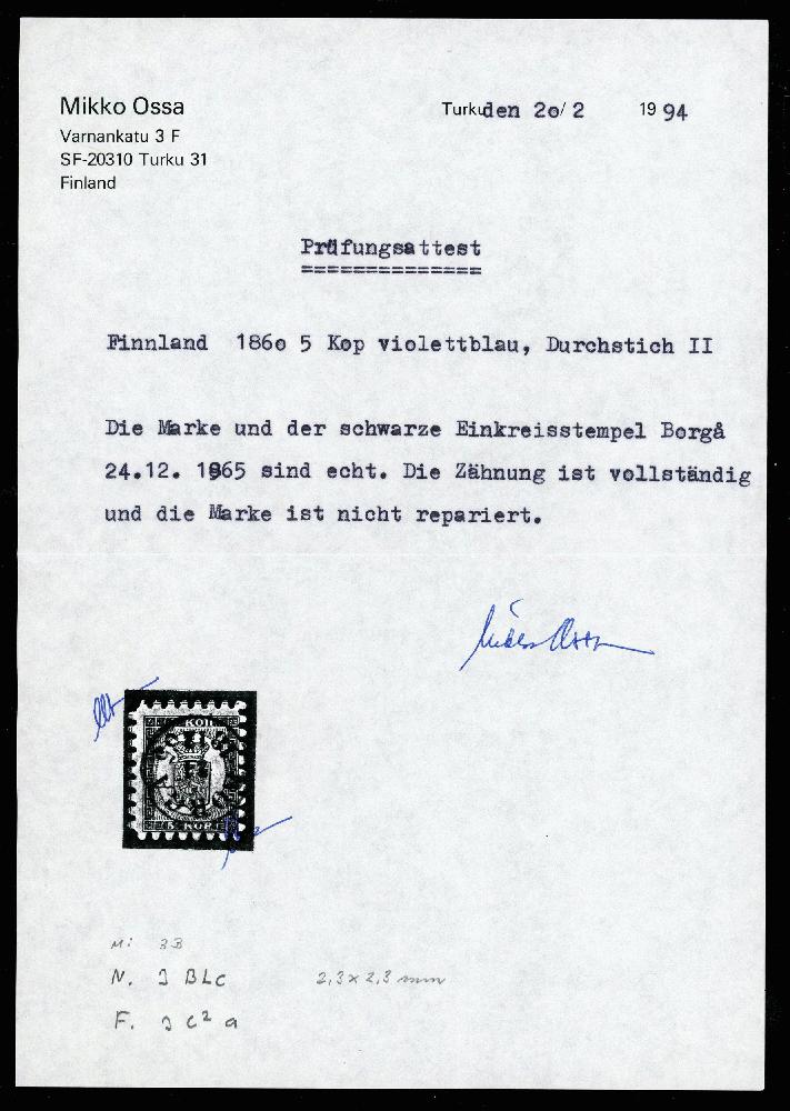 | Zusatzinformationen und Suchstichworte: | Klüttermann - 6. Auktion 27. Juli - 4. August 2023 Los 10688 Finnland 5 Kop. violettblau Durchstich B, Luxusstück mit allen Zungen und zentr.. K1 BORGA 24.12.1865, FA Ossa Katalogwert: 400 Ausruf 150,00 EUR |