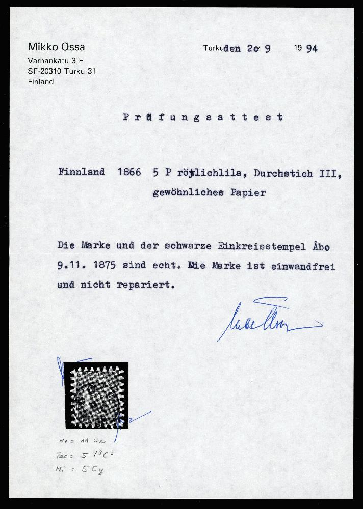 | Zusatzinformationen und Suchstichworte: | Klüttermann - 6. Auktion 27. Juli - 4. August 2023 Los 10702 Finnland 5 Pen. braunlila auf gestreiftem Papier Durchstich C, Luxusstück mit allen Zungen und glasklarem K1 ABO 9 11 1875, Liebhaberstück, FA Ossa Ausruf 180,00 EUR |