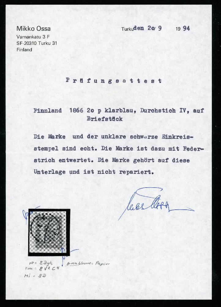 | Zusatzinformationen und Suchstichworte: | Klüttermann - 6. Auktion 27. Juli - 4. August 2023 Los 10724 Finnland 20 Penni blau Durchstich D mit allen Zungen auf Luxusbriefstück mit K1 und Federzug Entwertung, eine sehr seltene Marke, FA Ossa Katalogwert: 1800 Ausruf 700,00 EUR |
