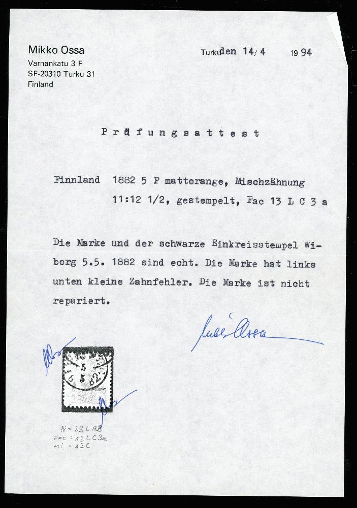 | Zusatzinformationen und Suchstichworte: | Klüttermann - 6. Auktion 27. Juli - 4. August 2023 Los 10743 Finnland 5 P. lachsfarben Zhng. C, li. unten kl. Zahnf. sonst tadellos gest. WIBORG, FA Ossa Katalogwert: 120 Zuschlag 24,00 EUR |