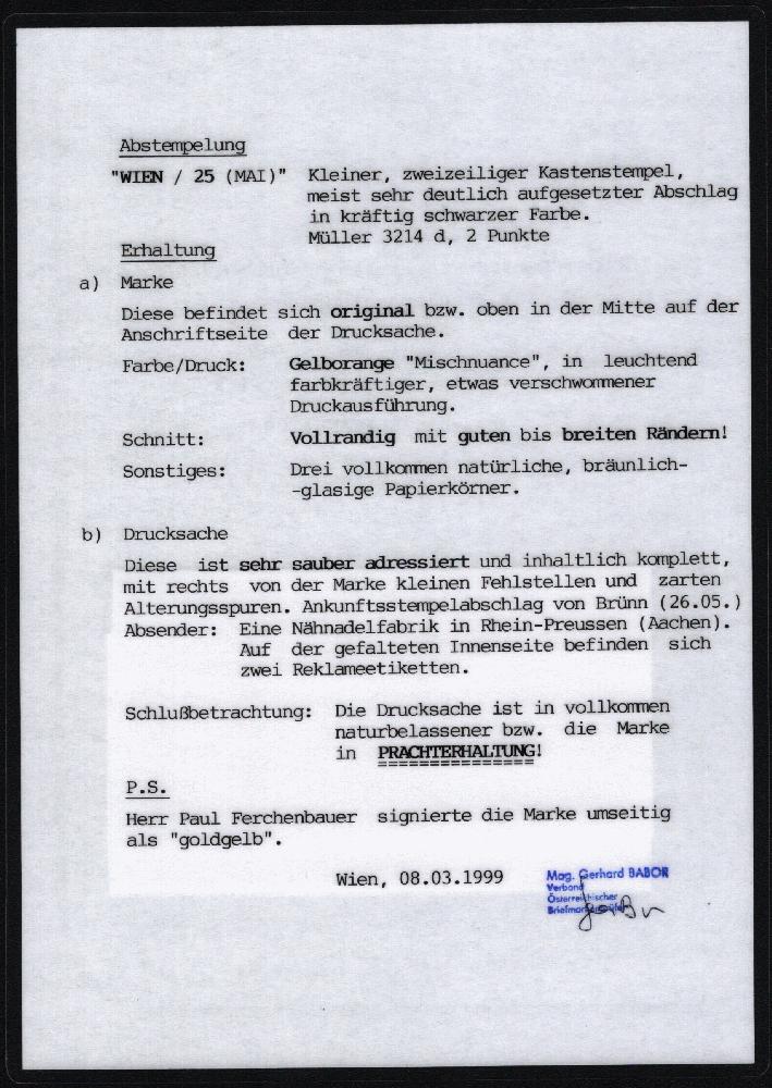 | Prüfer: | Babor, Gerhard (VÖB (Verband Österreichischer Briefmarkenprüfer)) |