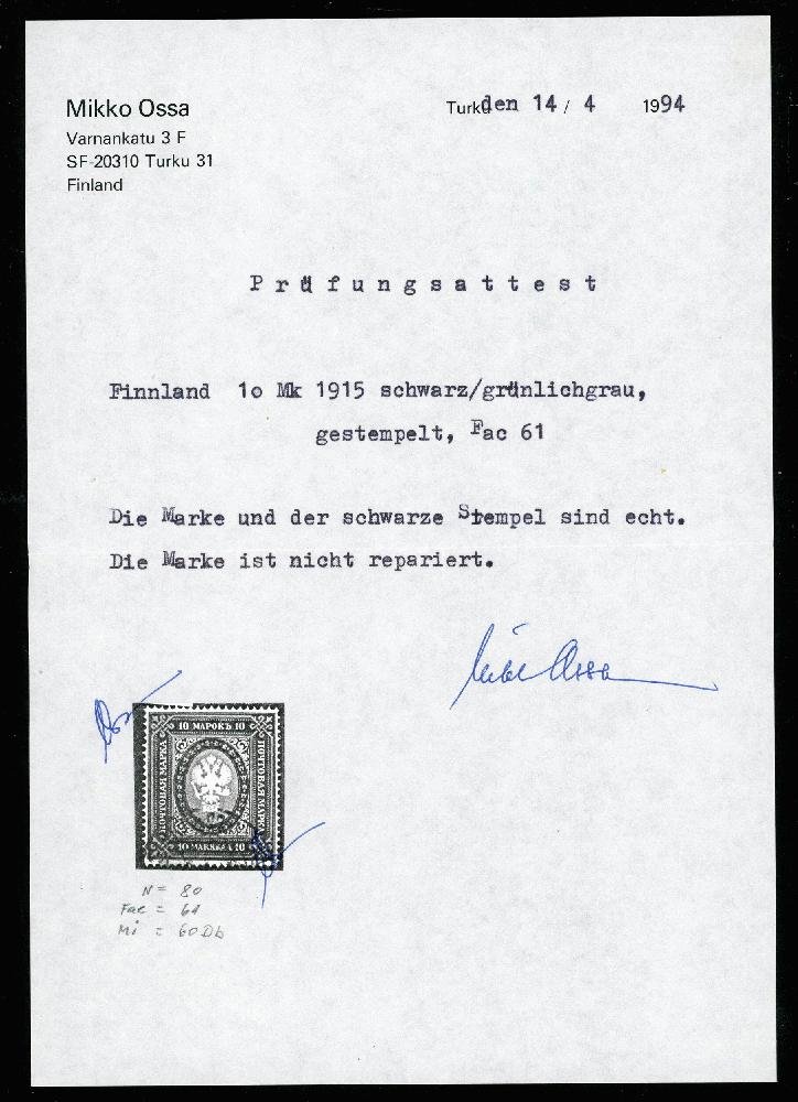 | Zusatzinformationen und Suchstichworte: | Klüttermann - 6. Auktion 27. Juli - 4. August 2023 Los 10784 Finnland 10 M. gez. L 14 1/2, tadellos gest., FA Ossa Katalogwert: 180 Zuschlag 62,00 EUR |