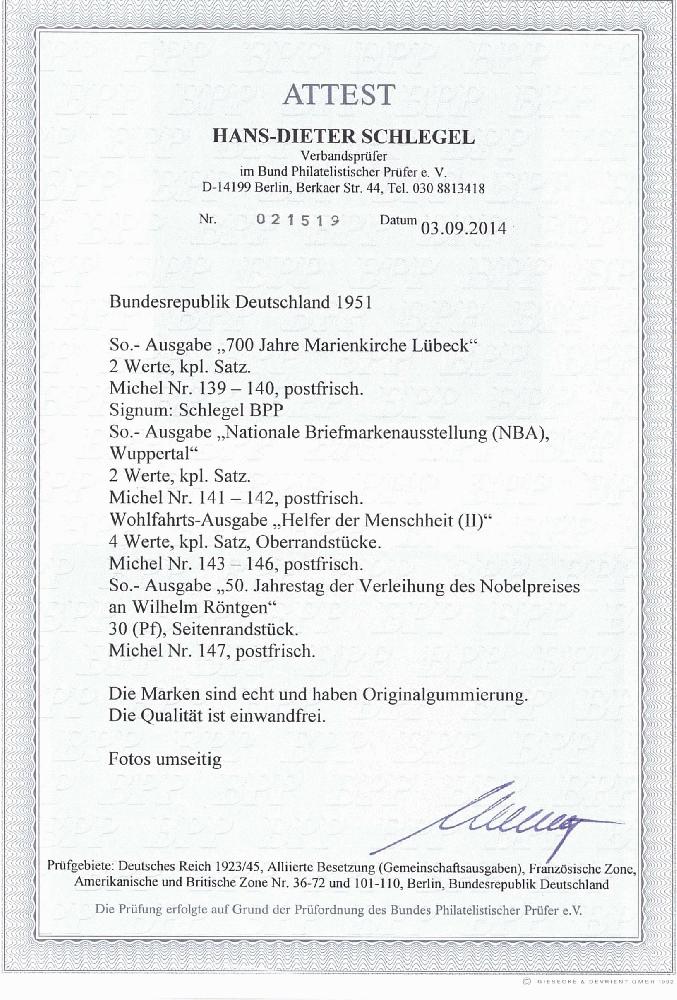 | KatalogNr: | Michel 139 - 140; 141 - 142; 143 - 146 und 147 |